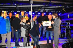 Voor een uitzinnige menigte werd vrijdagavond 9 december 2016 het voorlopige eindbedrag van het Glazen Dorpshuis bekendgemaakt. Iedereen op het Woldplein in Steenwijkerwold reageerde enthousiast toen de organisatie rond de klok van 22.00 uur wist te melden dat er meer dan achtduizend euro is opgehaald voor de Voedselbank Steenwijkerland.