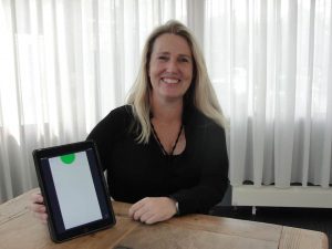 Daarnaast oefenen de patiënten ook thuis met de app. Zij kunnen tijdens een gesprek de smartphone gewoon op tafel leggen en vanuit hun ooghoek in de gaten houden. Een stip op het beeldscherm geeft aan of ze hard genoeg spreken en of ze de juiste toonhoogte aanhouden.