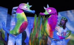Het wereldberoemde prentenboekje ‘Rupsje Nooitgenoeg’ vertelt het verhaal van een hongerige rups die zich overal doorheen eet. In deze familiemusical, in de kerstvakantie op vrijdag 3 januari om 14.00 uur te zien in Ogterop, voor de allerjongsten komen dit verhaal en drie andere verhalen van Eric Carle op magische wijze tot leven. Kleine en grote bezoekers worden meegenomen in de wereld van het Blauwe Paard, Vader Zeepaard, het Eenzame Vuurvliegje en Rupsje Nooitgenoeg. Een magische, ritmische voorstelling waarbij je met een grote glimlach op je gezicht ons theater verlaat.