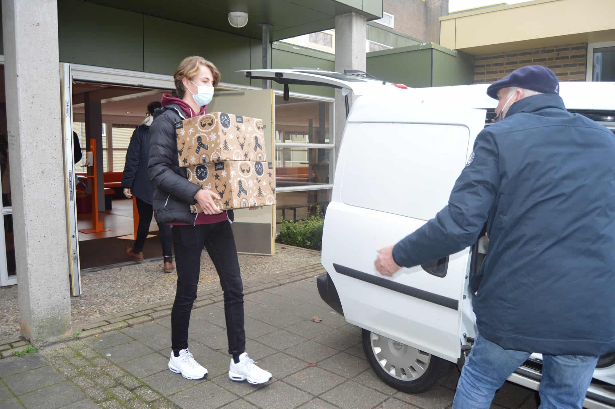 Vrijdagmorgen reed de auto van de Voedselbank voor bij school en zijn de dozen, gesponsord door Bijzonderdruk, ingeladen. Volgend jaar gaat de school voor nog meer pakketten!