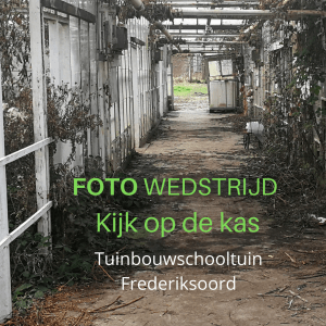 Stichting Tuinbouwschooltuin Frederiksoord organiseert in samenwerking met Stichting NICE een fotowedstrijd in en om de kassen op de tuin. Kom ook naar de tuinbouwschooltuin en maak een samenhangende serie van 10 kunst-foto’s. Wie weet mag jij je werk tentoonstellen in de kassen deze zomer!