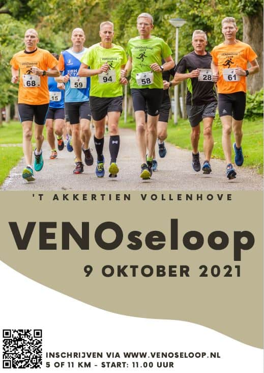 Zaterdag 9 oktober 2021 is het weer mogelijk om deel te nemen aan de vierde editie van de VENOseloop. Ook dit jaar worden er weer twee afstanden uitgezet van 5 km en 11km met prachtig uitzicht over het Vollerhoverkanaal, Kadoelermeer en de Bentpolder. Start- en finishlocatie is bij Vakantiepark ’t Akkertien en voor beide afstanden zal het startschot klinken om 11:00 uur.