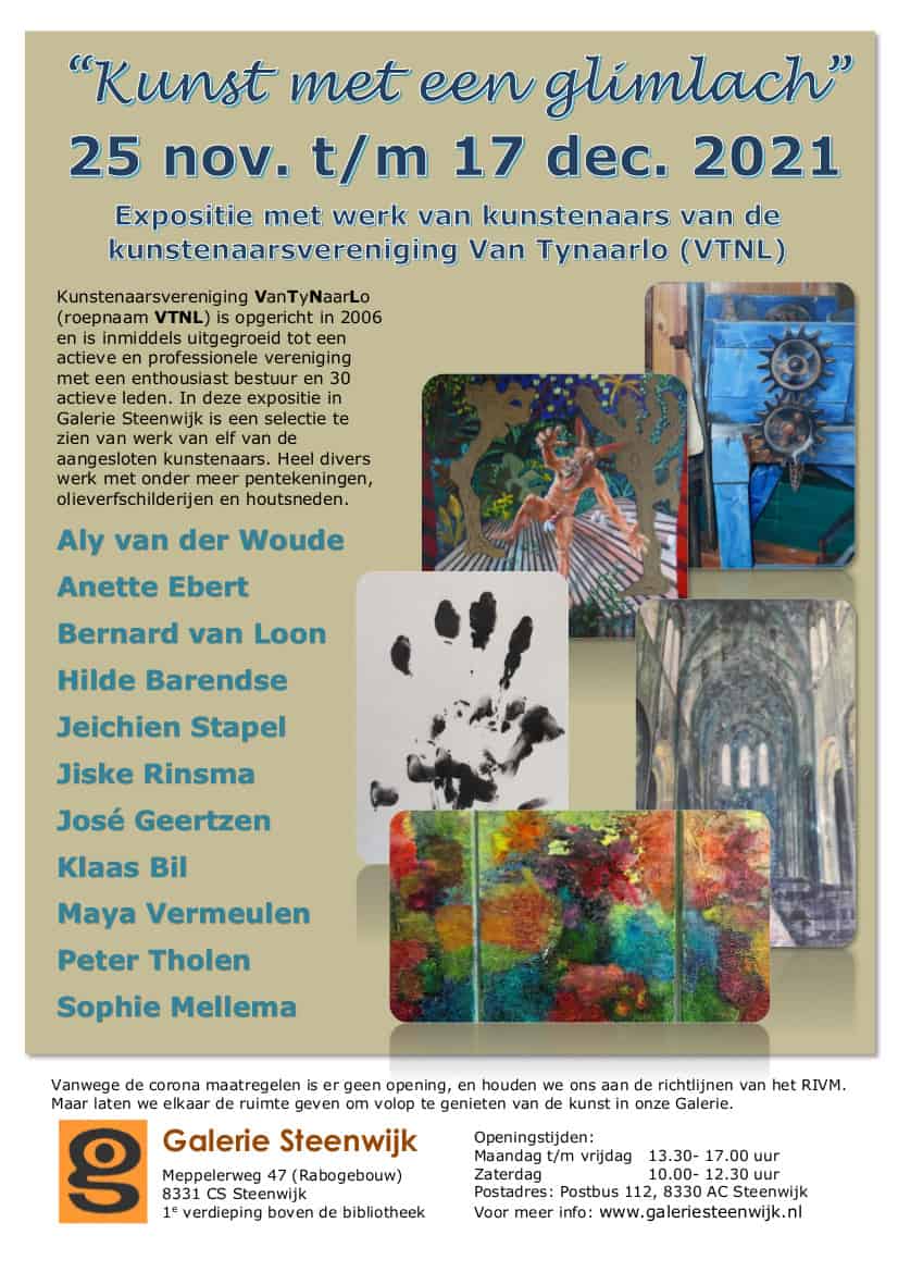 De derde expositie dit seizoen in Galerie Steenwijk wordt ingericht met werk van een deel van de VTNL, de Kunstenaarsvereniging voor professionele kunstenaars VanTyNaarLo. De leden wonen en/of werken in de gemeente Tynaarlo (Noord Drenthe) en de omliggende regio.