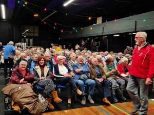 Dinsdagmiddag 15 november: om goed half twaalf rijdt er al een grote autobus het parkeerterrein van de Meenthe op; daarna rijden auto’s af en aan. Rollators worden uitgeladen en mensen in (elektrische) rolstoelen weten ook maar al te goed de ingang te vinden.