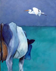 De gedichten van Eppie Dam geven een diepere lading aan de schilderijen. ‘Janines dieren leven in hun eigen wereld, die tegelijk mijn wereld is. Ze vertellen hun verhaal, vaak in eenzaamheid of van elkaar vervreemd, maar ik zie ook humor en voel soms ontroering. Daarbij is haar kleurbehandeling uitdagend en verrassend.’