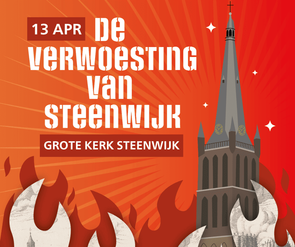 Op zaterdag 13 april is de cabareteske, historische voorstelling ‘De verwoesting van Steenwijk’ opnieuw te zien, deze keer in de Grote Kerk in Steenwijk.