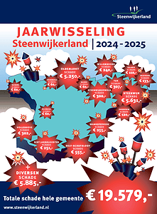 De jaarwisseling in Steenwijkerland is over het algemeen rustig verlopen. Toch is er voor €19.579,- aan schade ontstaan. De meeste beschadigingen zijn ontstaan aan verkeersborden, maar ook enkele afvalbakken zijn kapot gemaakt.