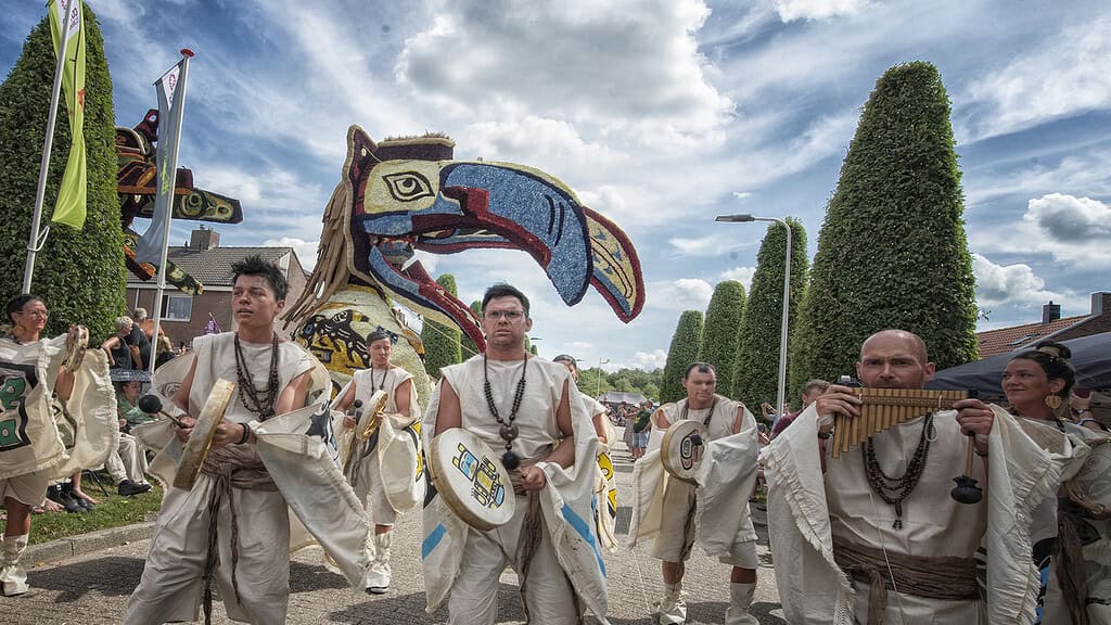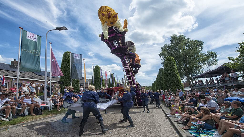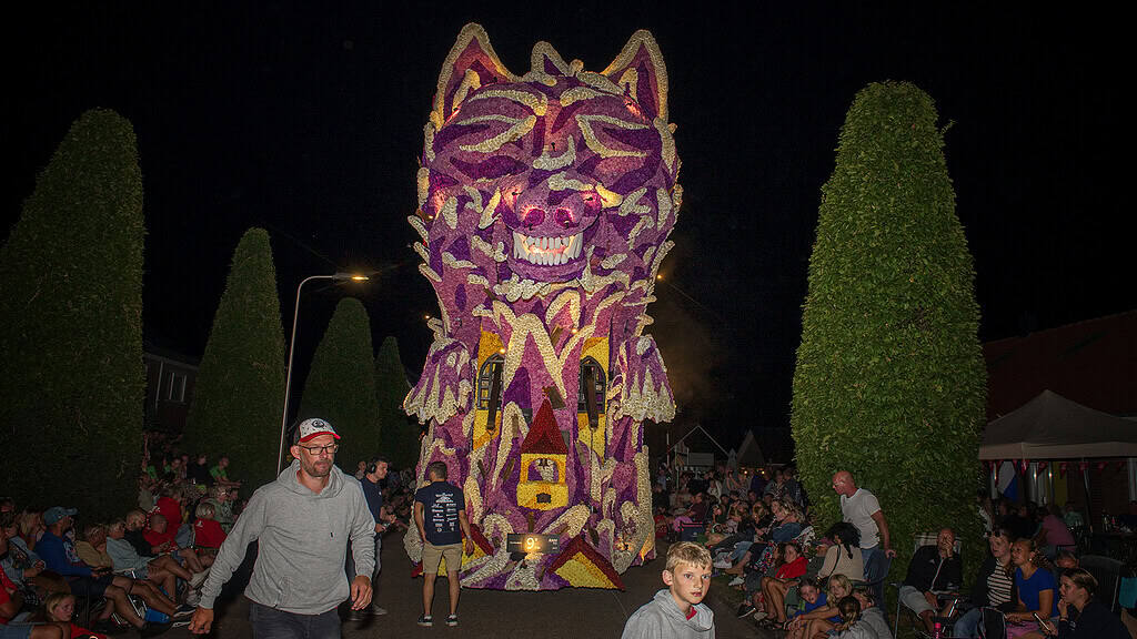 Het corso is een staaltje doorzettingsvermogen: er werd dit jaar maar liefst 3,2 miljoen dahlia’s verwerkt in de wagens. De bouwgroepen werkten daar acht maanden lang intensief aan. In totaal trokken de twaalf creaties zo’n vier miljoen bloemen door de straten.