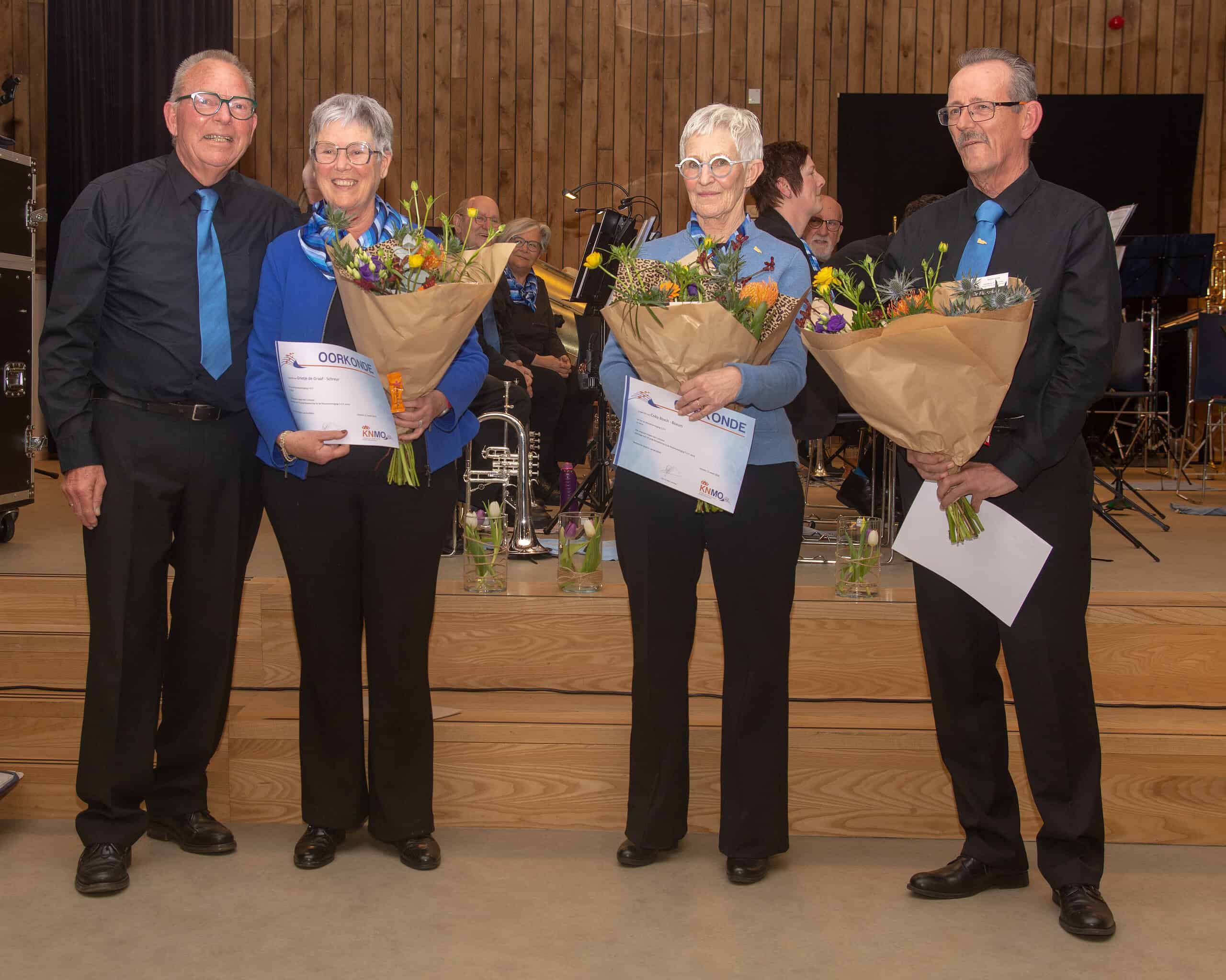 Naast de muzikale hoogtepunten was er ook ruimte voor een bijzonder moment: het huldigen van maar liefst drie jubilarissen. Anne Snijder werd in het zonnetje gezet vanwege zijn 60-jarig lidmaatschap, terwijl Coby Bosch en Grietje de Graaf beiden werden gehuldigd voor 50 jaar muzikant. De vereniging sprak haar grote waardering uit voor hun jarenlange inzet, betrokkenheid en liefde voor de muziek.