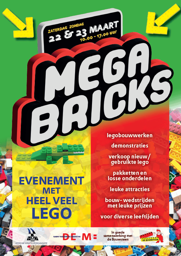Op 22 en 23 maart 2025 organiseren wij in het Rabotheater de Meenthe in Steenwijk een groots opgezet Lego-evenement onder de naam Mega Bricks.